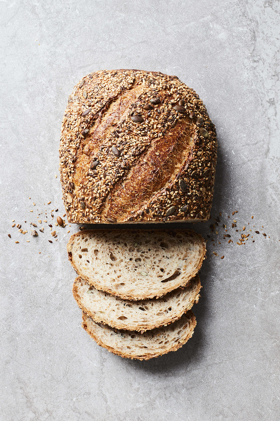 Baked with potatoes we roast — skin on — in our bread ovens, then knead into the dough to create a rich, fragrant sourdough. It’s coated in polenta for a golden, textured crust, and made with a wholesome blend of wholemeal flours and diverse grains that add depth and nutrition.